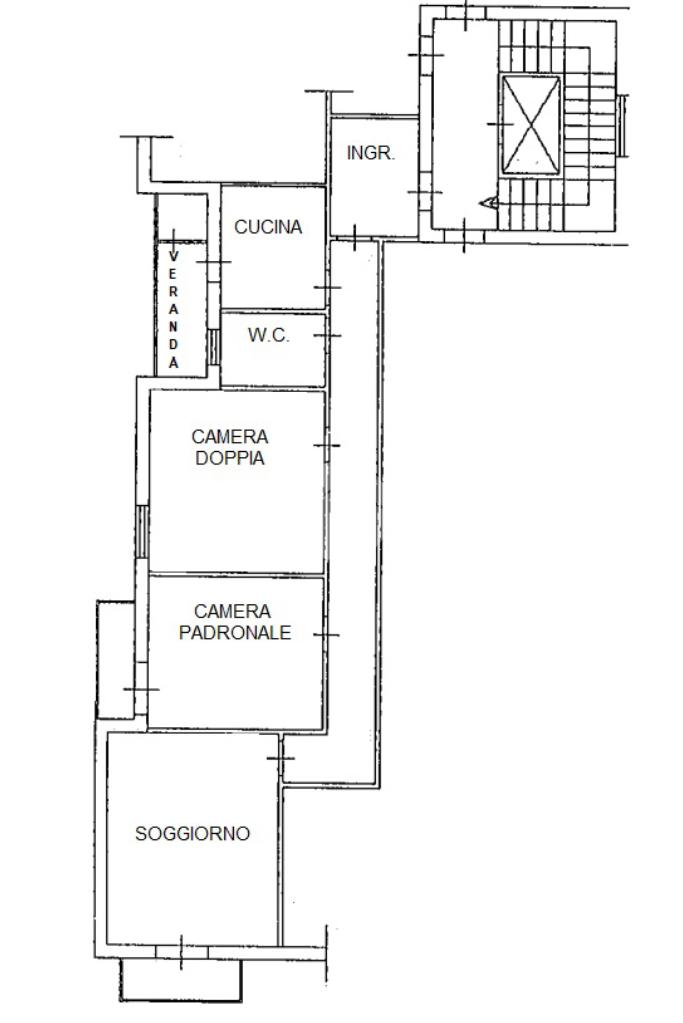 L'immobile, situato nella scala 'B' dotata di ascensore, si sviluppa attorno a un ingresso con saletta che introduce in un corridoio distributivo, da cui si accede agli ambienti principali.