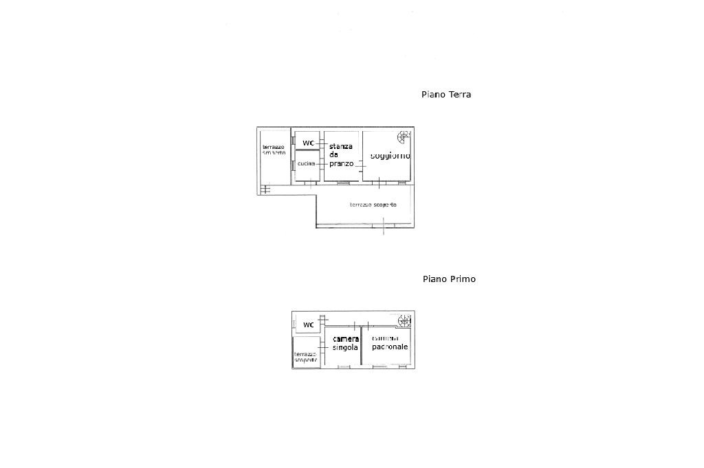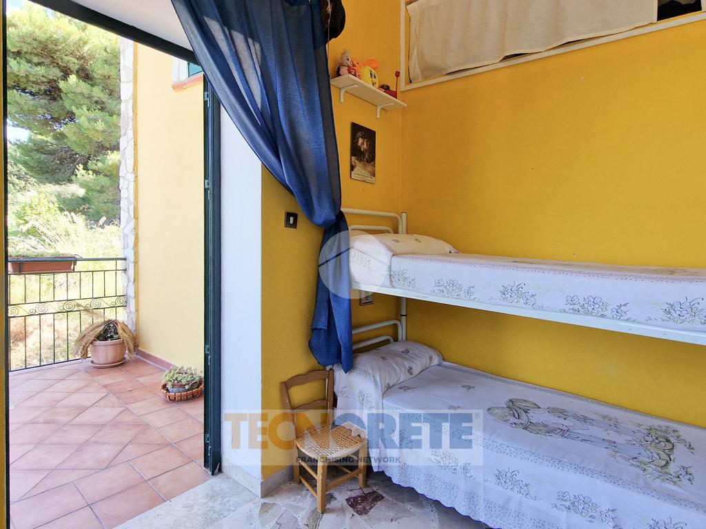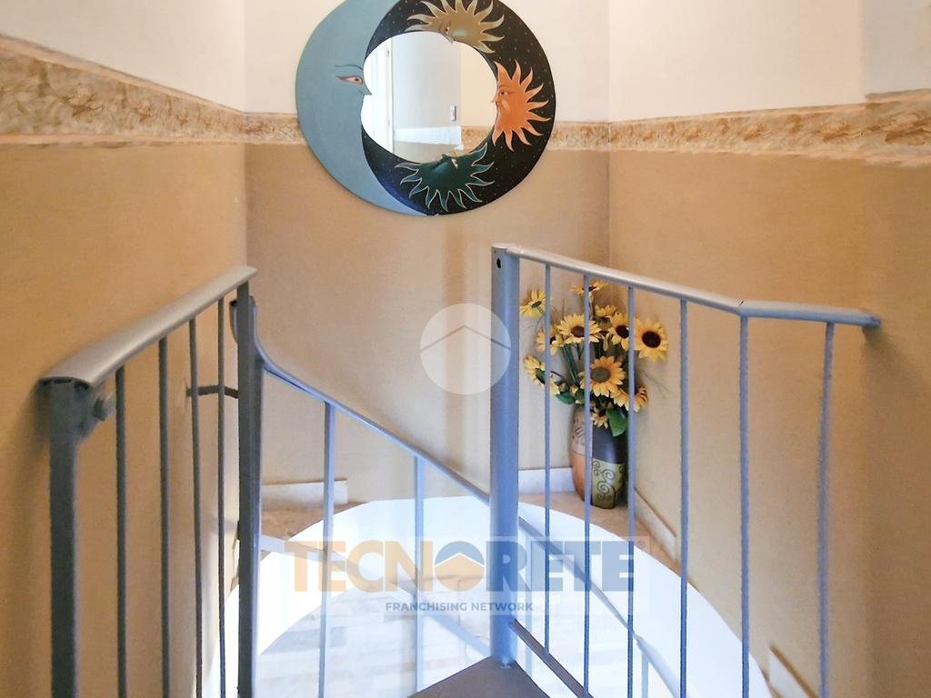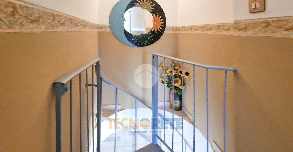Dalla scala a chiocciola, posizionata nel soggiorno, si accede al piano superiore in cui troviamo la zona notte con la camera padronale, una cameretta con altro terrazzino scoperto ed il servizio igienico con doccia.